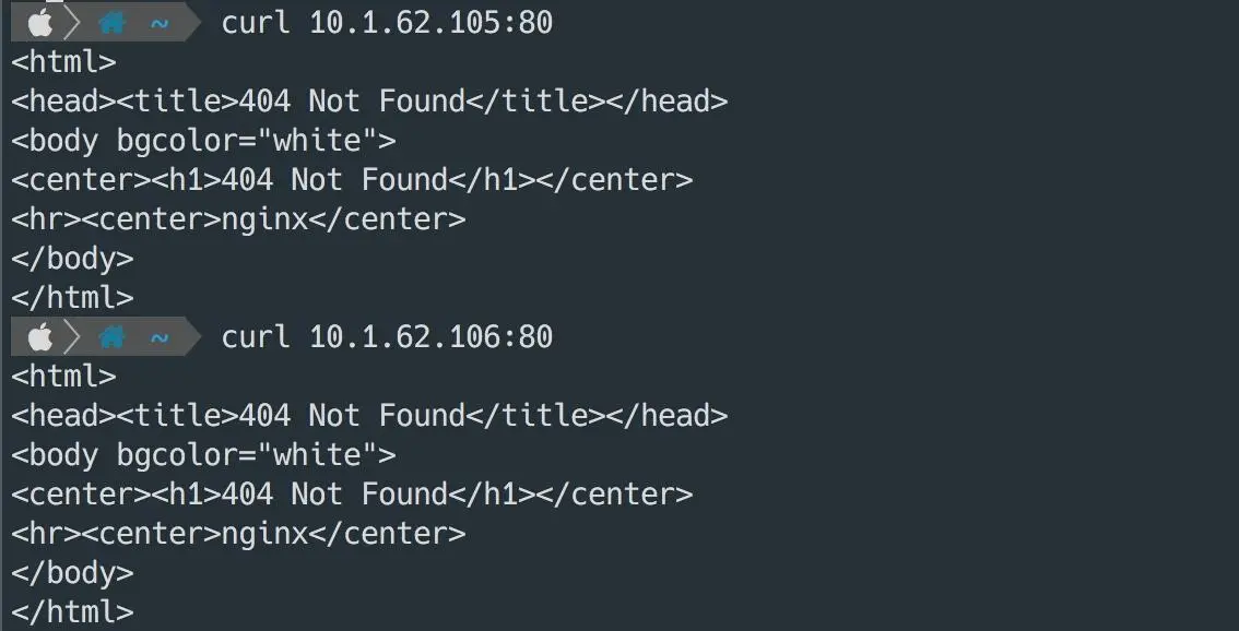 直接访问 RS1:PORT 和 RS2:PORT 均可以正常访问 Nginx 服务(由于我未写入index.html,所以返回404页面是正常现象)。