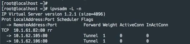 在 Client 端继续使用命令for i in {1..100}; do curl 10.1.61.82:80; sleep 0.5; done循环请求 VIP:PORT,然后在 DS 上使用命令ipvsadm -L -n再次查看连接状态。发现 InActConn 数值发生了改变,说明 DS 是收到了 Client 端的数据包的,ActiveConn 为0是因为 DS → RS 被拒,所以 tcp 连接未能建立。