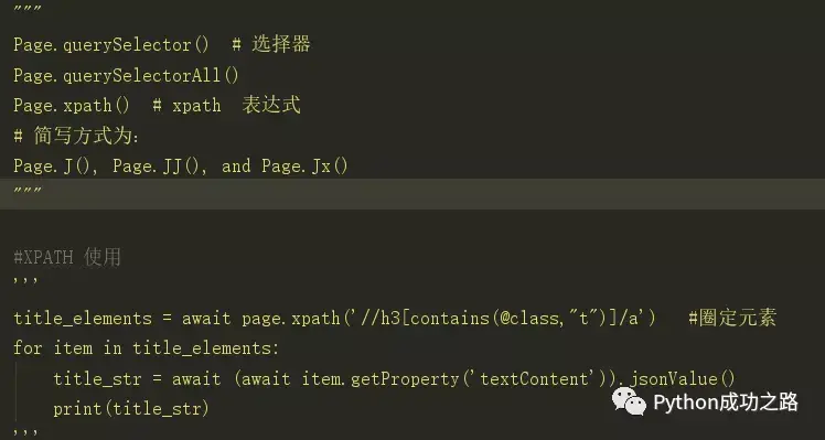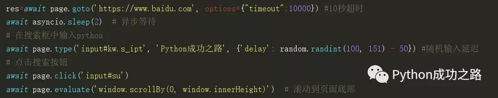 但在selenium被广泛和谐的今天,pyppeteer无疑为防爬打通了捷径,针对selenium的T宝、M团等网站,以前不能用selenium的现在可以使用pyppeteer轻易拿下,后面将针对pyppeteer进行系列教程的分享,关注公众号【Python成功之路】带你走向成功。
