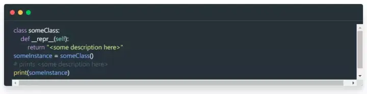 在 Python 中定义类或对象时,提供一种将该对象表示为字符串的“官方”方法是很有用的。例如: