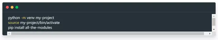 你有可能同时会处理多个 Python 项目。然而不幸的是,有时两个项目会依赖于相同依赖关系的不同版本。你在系统上都安装了哪些版本的依赖关系呢?在命令行输入如下内容: