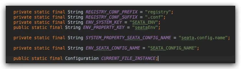 其中 registry 为注册中心的配置属性,这里先不讲,config 为配置中心的属性值,默认为 file 类型,即会加载本地的 file.conf 里面的属性,如果 type 为其它类型,那么会从第三方配置中心加载配置属性值。