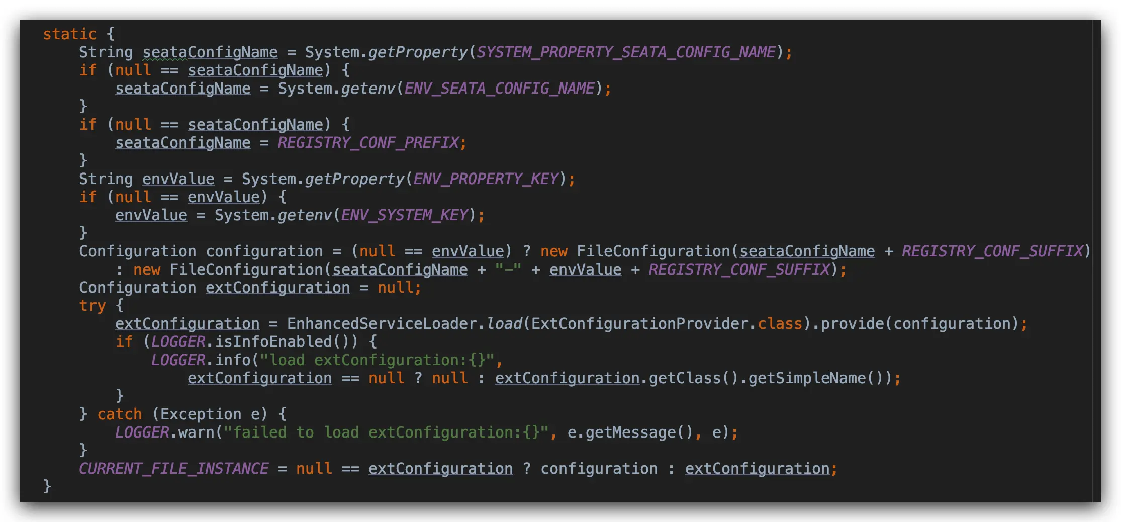 在 Seata 项目中,获取一个第三方配置中心实现类通常是这么做的: