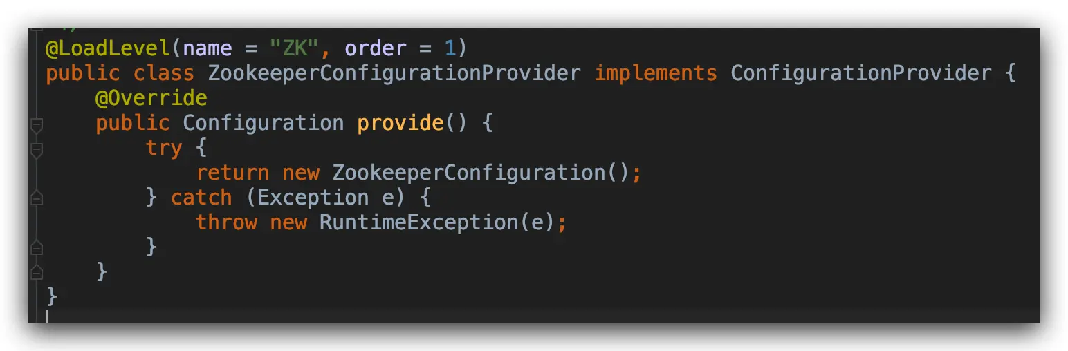如上,即是刚刚我所说的 ZookeeperConfigurationProvider 配置实现输出类,我们再来看看这行代码: