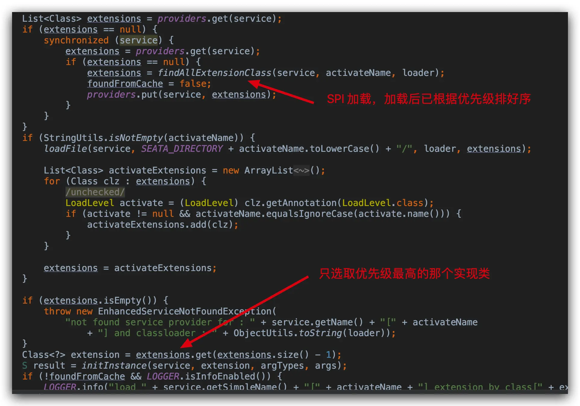 但是我们发现 Seata 还可以用这个方法进行选择,Seata 在调用 load 方法时,还传了一个参数: