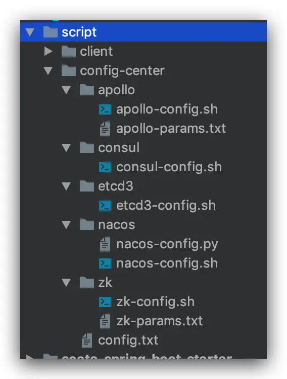config.txt 为本地配置好的值,搭建好第三方配置中心之后,运行脚本会将 config.txt 的配置同步到第三方配置中心。