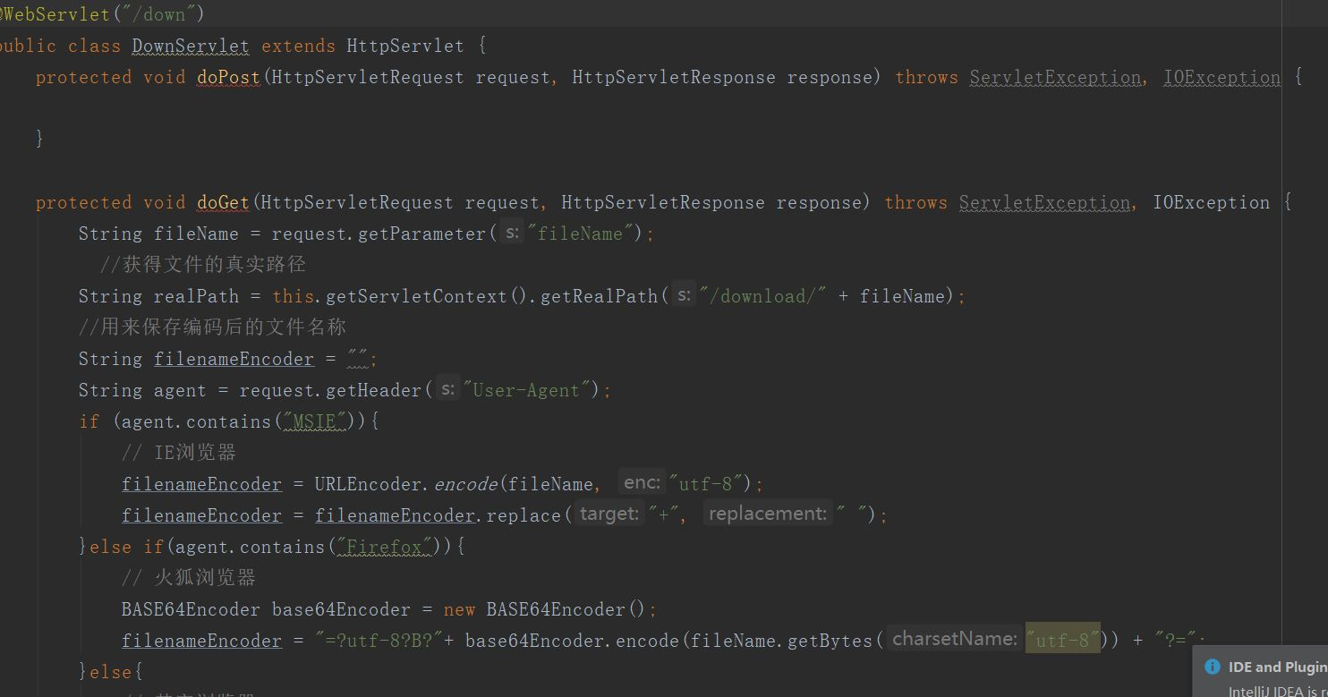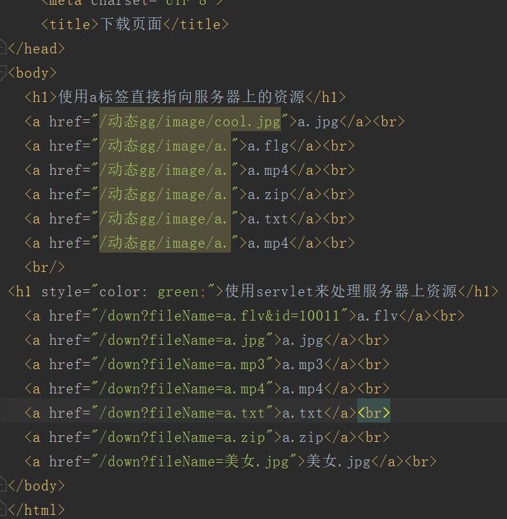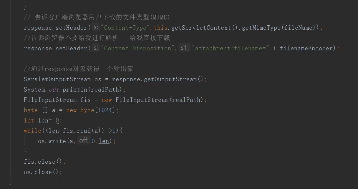 Tomcat之HttpServlet的文件上传和下载 Moyu王者 2019-12-16 251 阅读1分钟 1.创建一个下载网页的html文件 2,根据超链接进行事件编写 这里面的@WebServlet里面的双引号值前面一定要有(/)斜杠 不然指定不到正确的文件路径 这里要注意的是必须设置两个Header响应头部的消息 叫浏览器不要进行解析 直接进行下载 3.实现的效果 这时候直接点击照片中的a标签链接就可以直接从服务器下载文件了 这项功能主要用于从服务器获取服务器的资料 我乱写的 写的不好