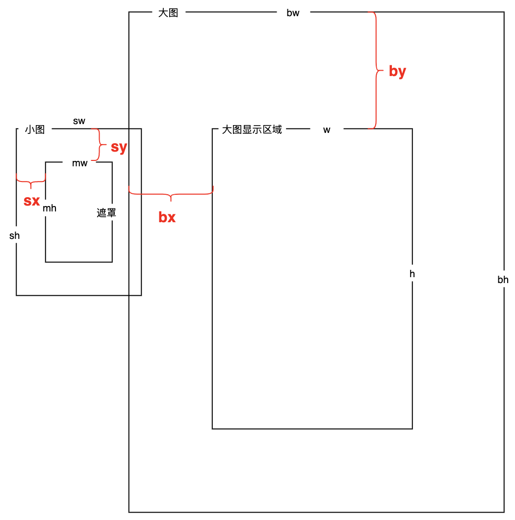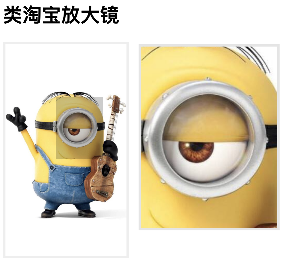 关键点:由于是等比例缩放图片,所以大图和小图的中心点是一样的,我们最终是要求出放大镜距离大图的left值和top值。
