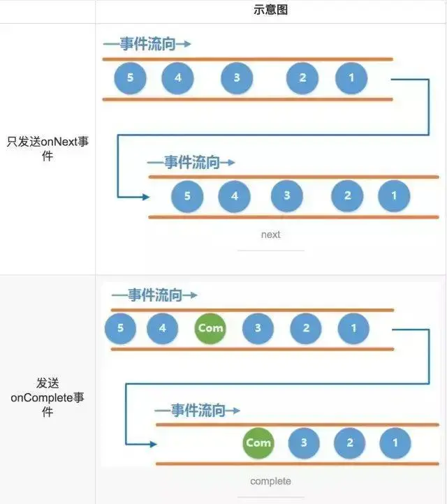 注: 比如发送多个onComplete是可以正常运行的, 依然是收到第一个onComplete就不再接收了, 但若是发送多个onError, 则收到第二个onError事件会导致程序会崩溃.