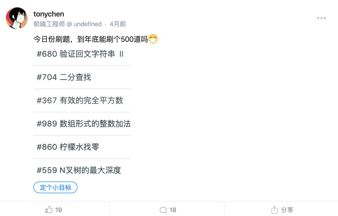 其实翻一下我的沸点可以看到之前立了一个 flag😷