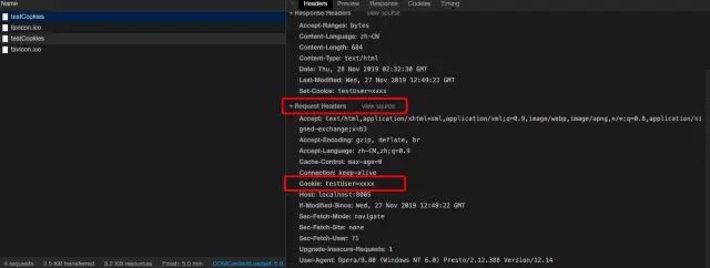 接下来我们再次刷新这个页面可以看到在请求体中已经设置了Cookie字段,并且将我们的值也带过去了。这样服务器就能够根据Cookie中的值记住我们的信息了。