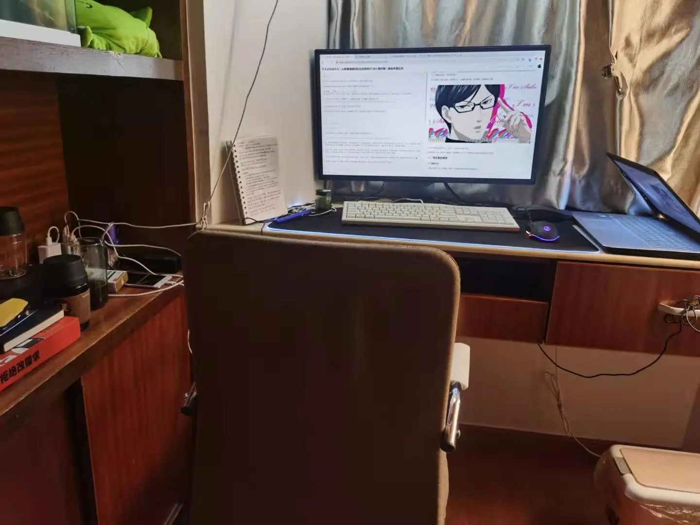 这里是我在家(当然是租的)去写东西的地方,我的书房,平时猫一般在左上角或者脚边睡觉。在广州的深夜甚至凌晨,我并不孤单,而且饶有趣味。