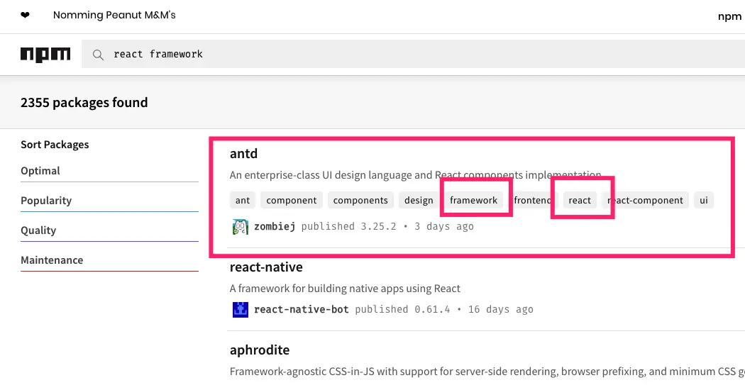 另外,你还可以去 https://www.npmjs.com/ 查询更多更详细的包信息。