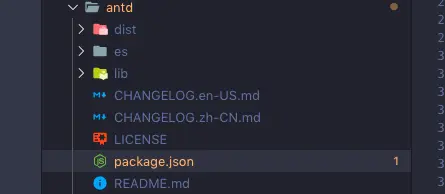 上面的说法可能有点太抽象,我们直接拿 ant-design 来举个例子,ant-design 的 package.json 中有如下配置: