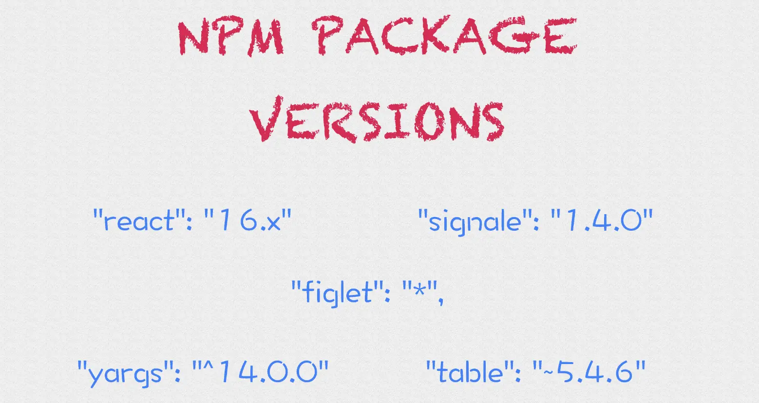 依赖包名称:VERSIONVERSION是一个遵循SemVer规范的版本号配置,npm install时将到npm服务器下载符合指定版本范围的包。
