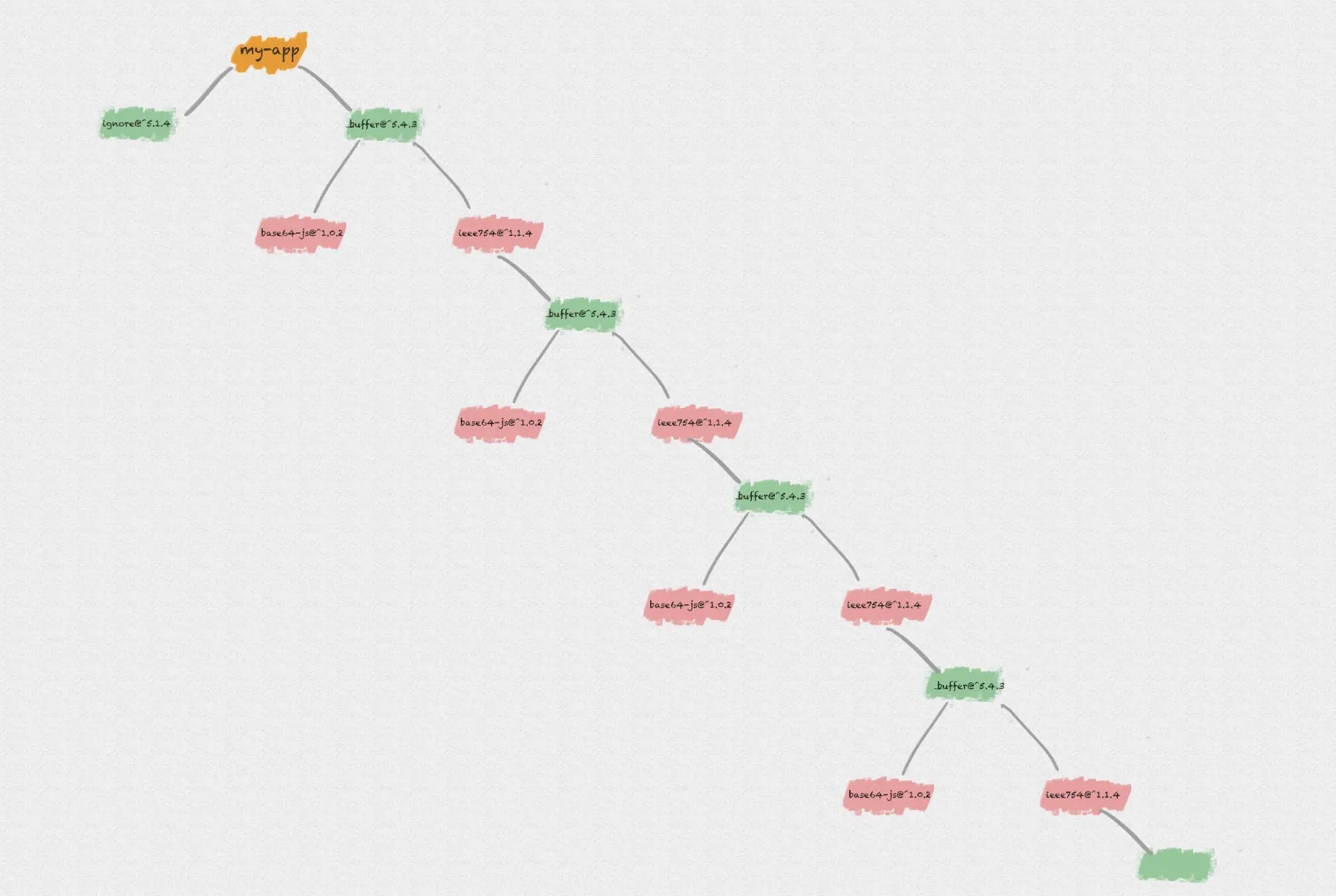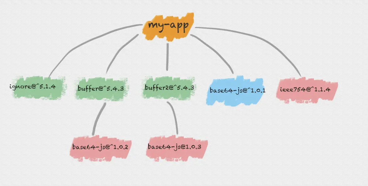node_modules根目录。 - 当遇到相同模块时,判断已放置在依赖树的模块版本是否符合新模块的版本范围,如果符合则跳过,不符合则在当前模块的