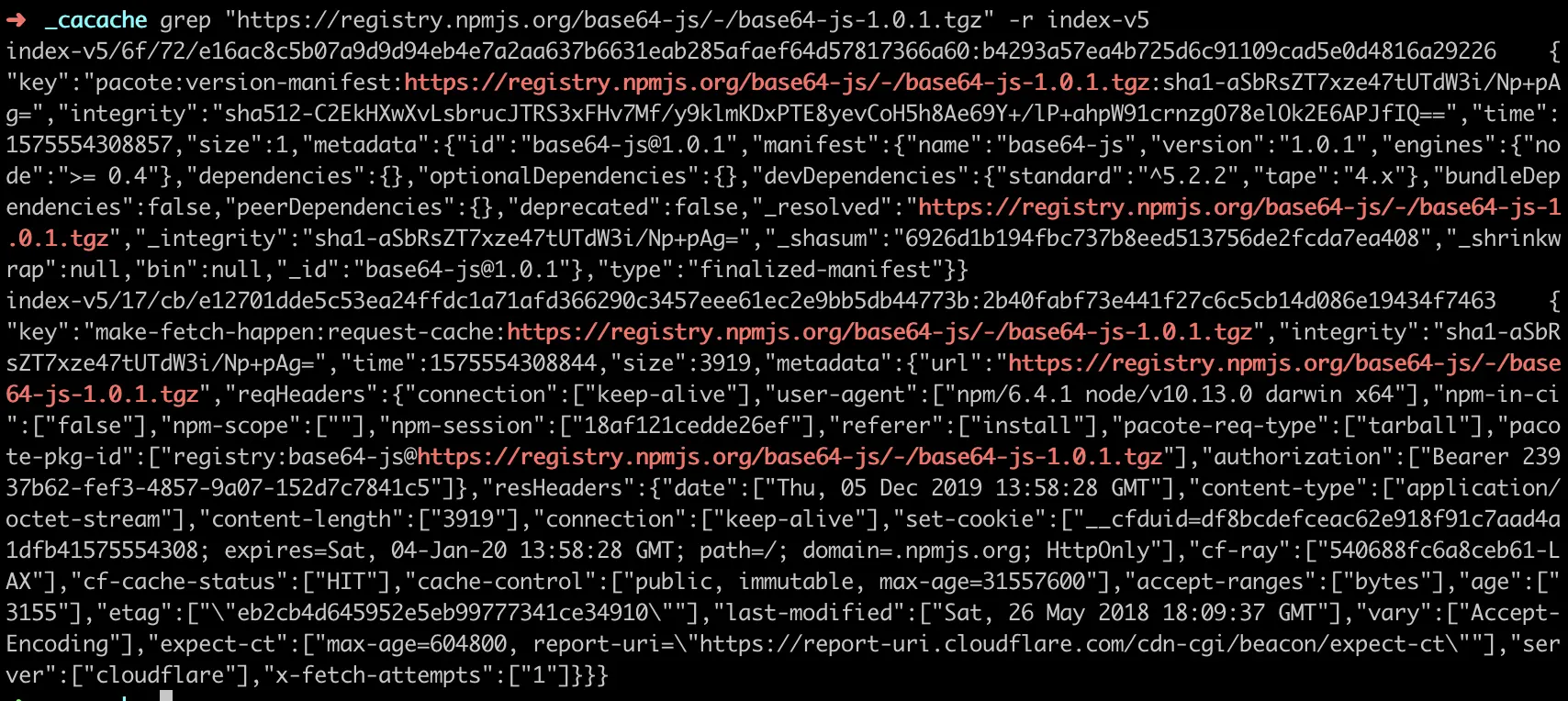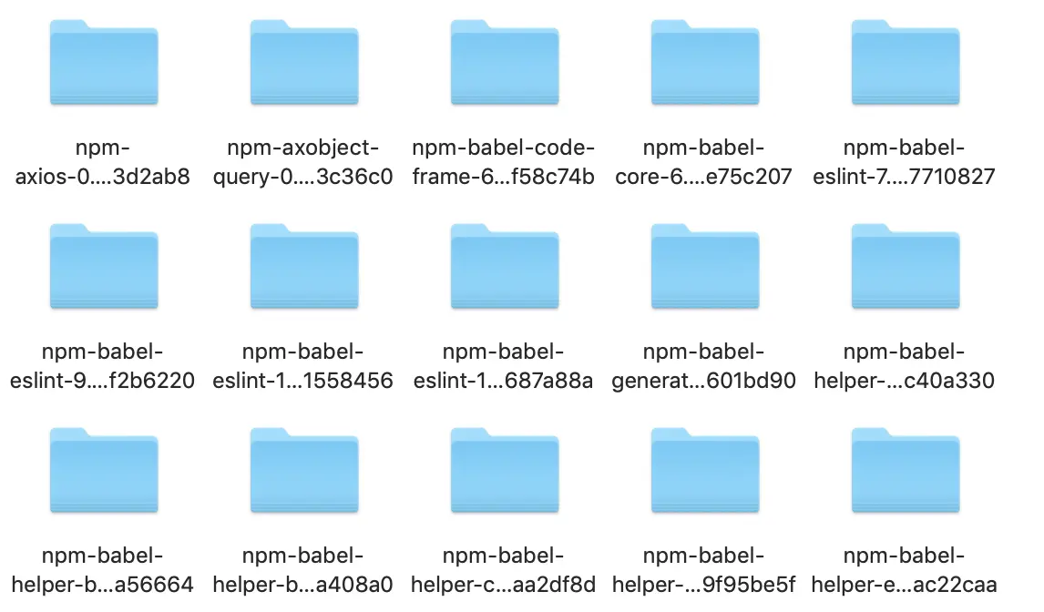 以上的缓存策略是从 npm v5 版本开始的,在 npm v5 版本之前,每个缓存的模块在 ~/.npm 文件夹中以模块名的形式直接存储,储存结构是{cache}/{name}/{version}。