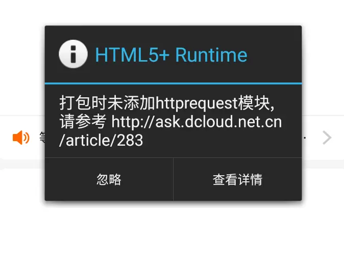 uni-app打包遇到httprequest模块未添加 敬畏code 2019-12-17 689 阅读1分钟 昨天来新公司运行uni-app项目在Android设备上发现一直提示:根据提示查看非第三方SDK引起,经过摸索发现原来这个模块是自定义的插件,按照自定义插件相关流程解决此问题。第一步:将之前工程里面的Android文件拷贝到新工程;第二步:将需要的aar包拷贝到libs目录下;第三步:将相关的feature 添加进入dcloud_properties.xml文件重新运行工程,解决此问题。