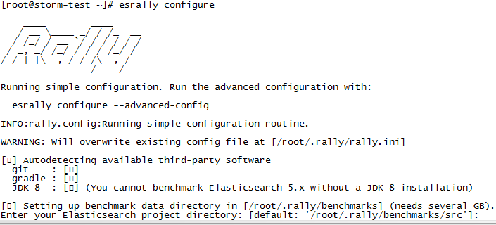 esrally --pipeline=benchmark-only --target-hosts=host:9200 --distribution-version=5.2.2(本人用的5.2.2)