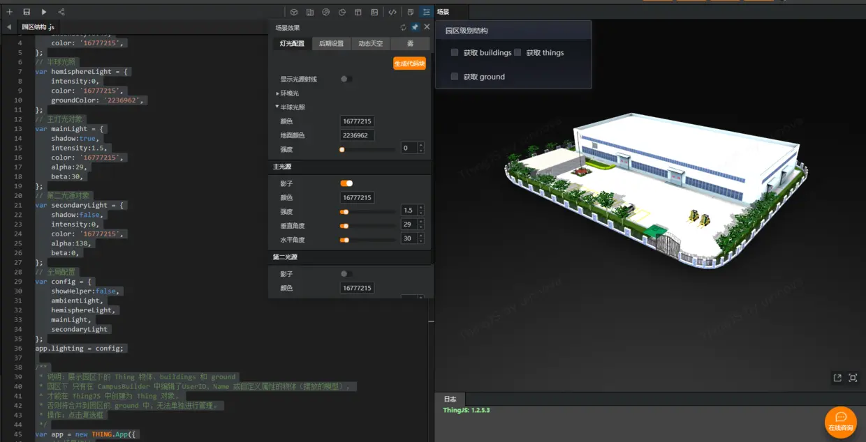 * 说明:展示园区下的 Thing 物体、buildings 和 ground