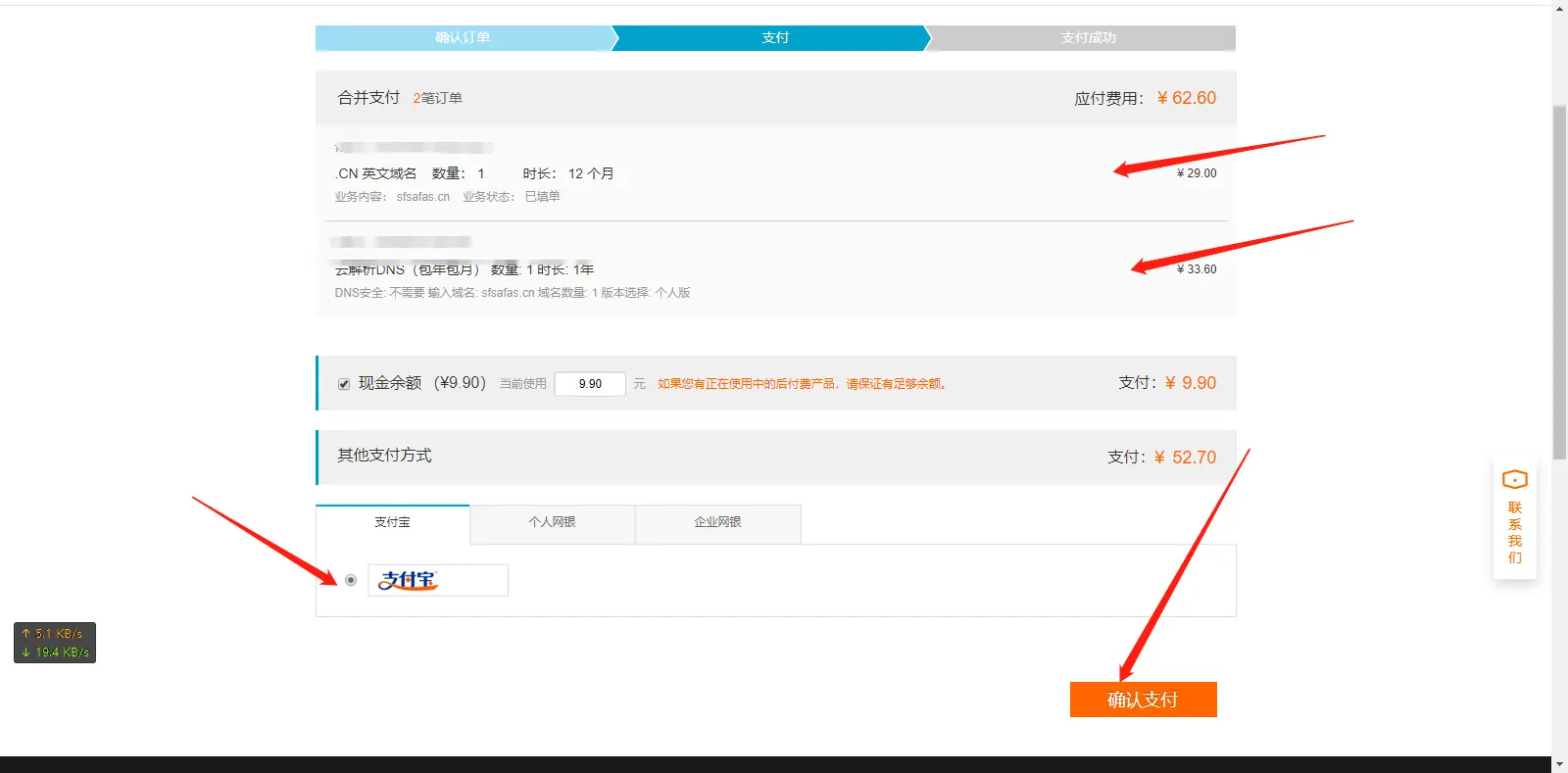 ·加入清单立即购买 ·推荐直接选个云解析套餐 因为它可以把你得域名解析以便使用 ·付款 云解析设置(必须解析才能使用) 云解析设置教程