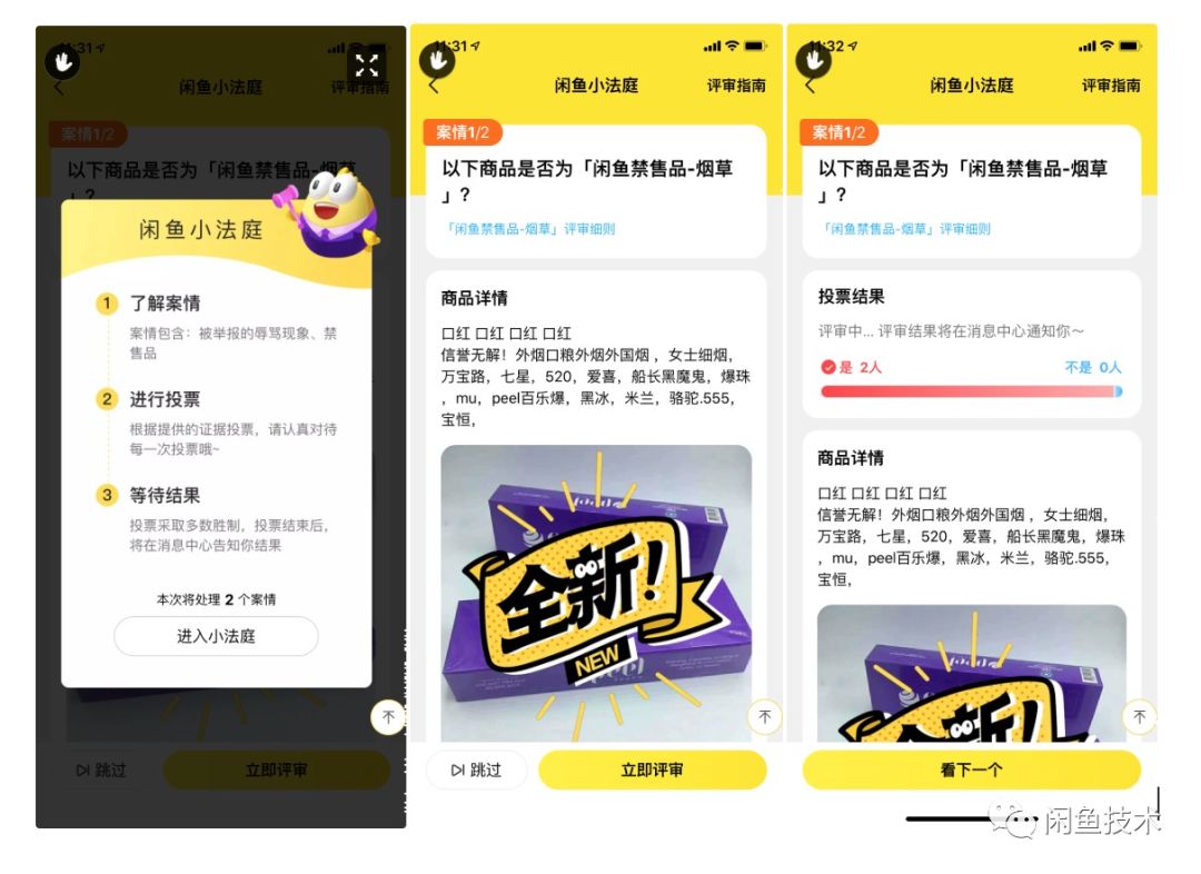 带着问题找答案,闲鱼C2C自由交易的特点,天然是带有社区的基因,是拥有社区自治化的基础,而我们通过数据分析发现,闲鱼上有很多活跃用户,他们希望能在闲鱼平台上能够参与更多,因此这个问题带来了一种解题思路:将用户举报的内容交还给用户来判定,平台提供连接方式。