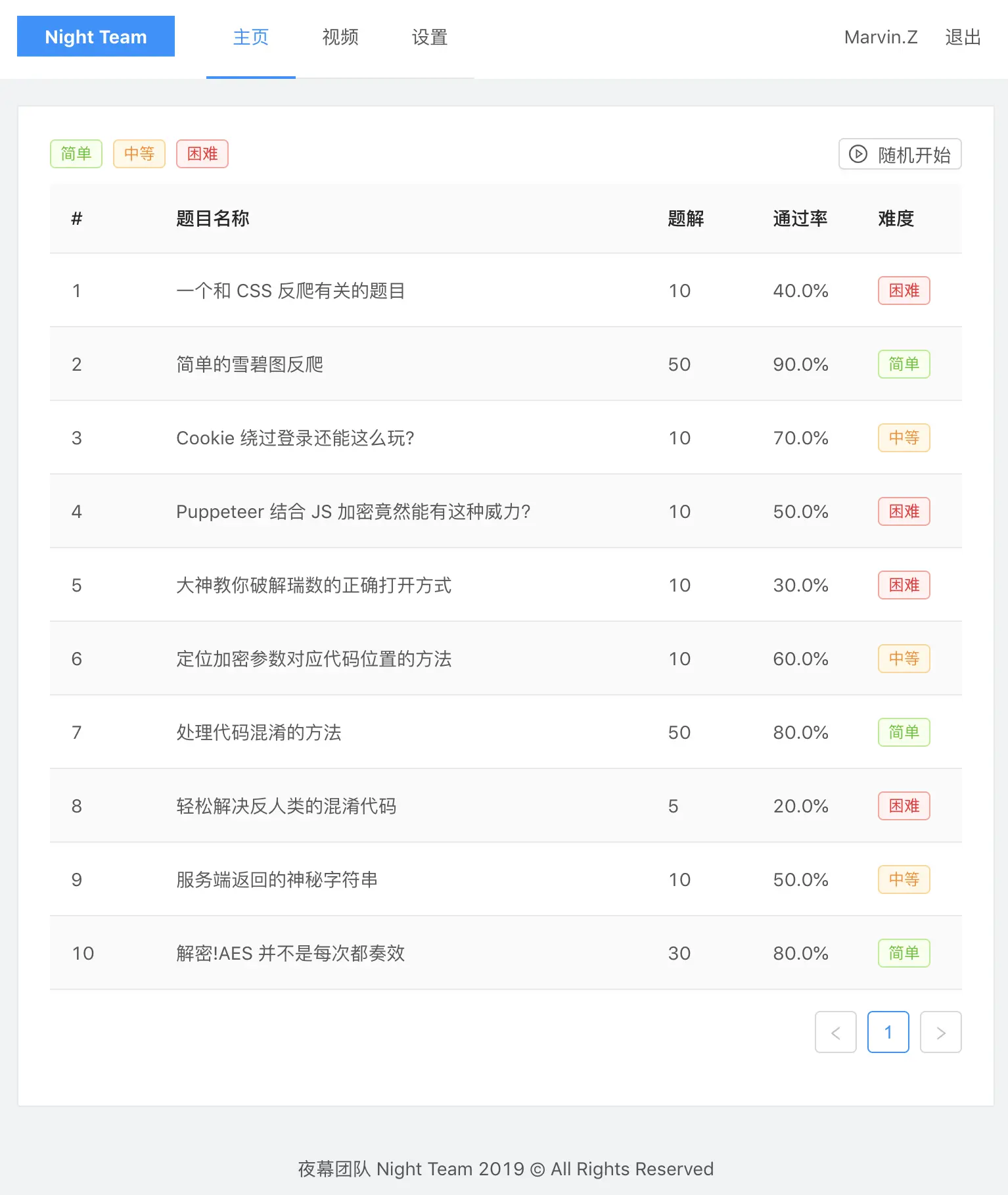 于是乎团队选择自己搭建练习平台,供各位练手。这样既能够保证学习质量,又可以为大家避免侵权问题,甚好。