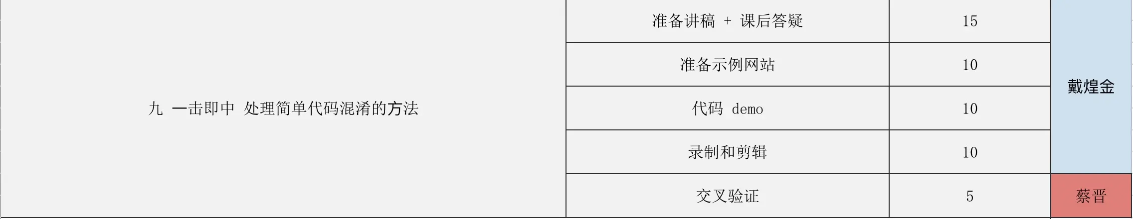 具体操作是划分出课程的不同组成部分,队员自行认领,任务认领表如下图所示: