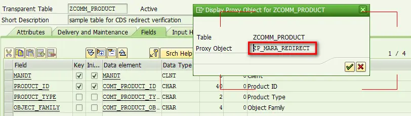 (2) table ZCOMM_PRODUCT which is redirected to CDS view ZP_MARA_REDIRECT