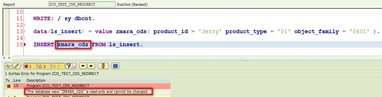 Once the database table is redirected to a CDS view, the database itself is not supported to be changed by ABAP code. See this example below:
