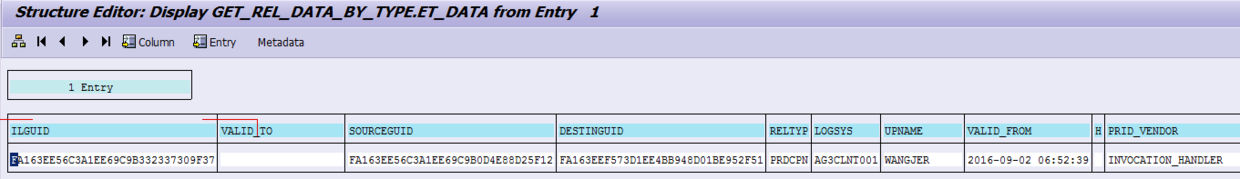 It contains interlinkage guid, source object guid and target guid. Source guid: FA163EE56C3A1EE69C9B0D4E88D25F12 This guid points to the product: