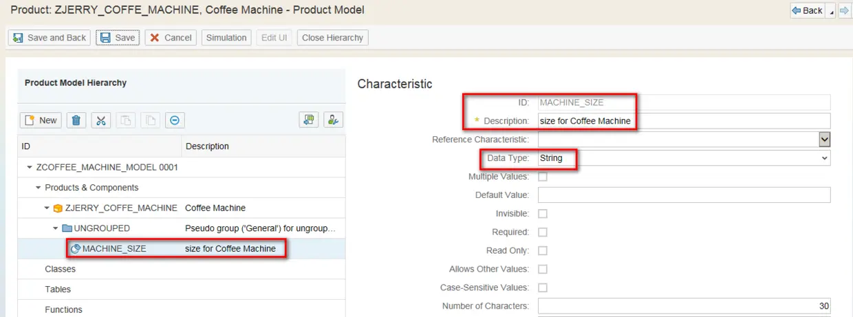 Once you click Simulation button, you can configure the model according to available characteristic value maintained in previous step:
