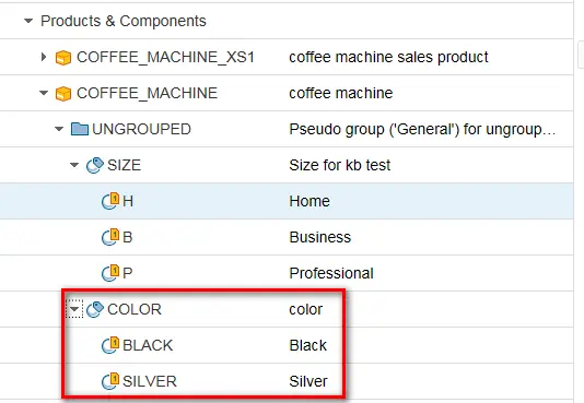 For a car, the interior, the engine capacity, and the exterior paint color can vary, for example. When the customer selects this car in the Web shop, the possible characteristics for the product are displayed automatically. The customer can select the characteristic values that he or she wants. Only characteristics that are compatible with the previously selected characteristic values are shown. If the various characteristics of a product affect its price, the price that is displayed is also recalculated.