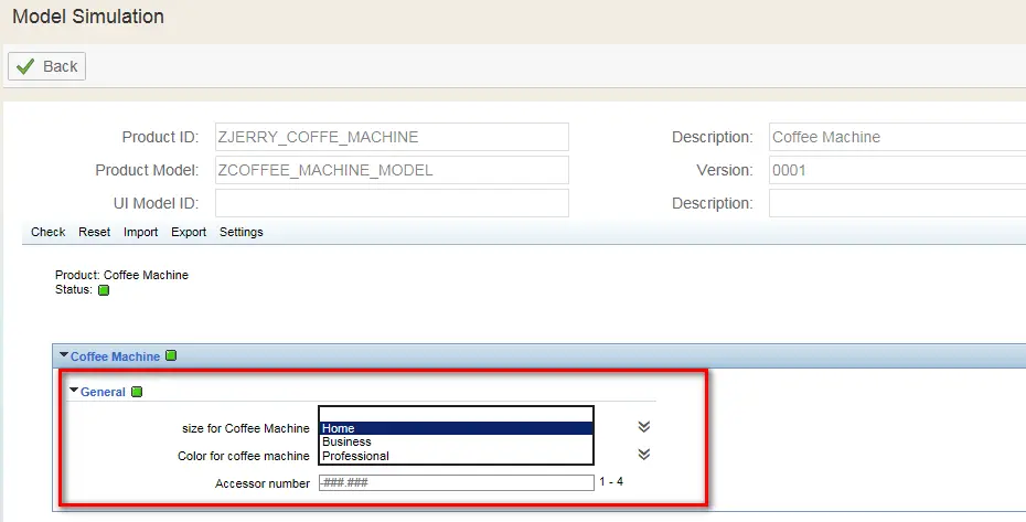 Now simulate the product model, once Home is selected from drop down list and press entry key, the value 2 is automatically determined to 2 as expected.