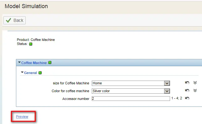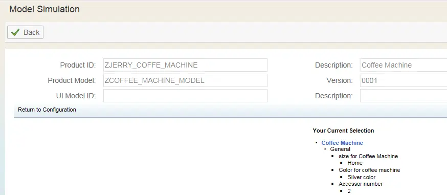 You will get an overview of configured product model: