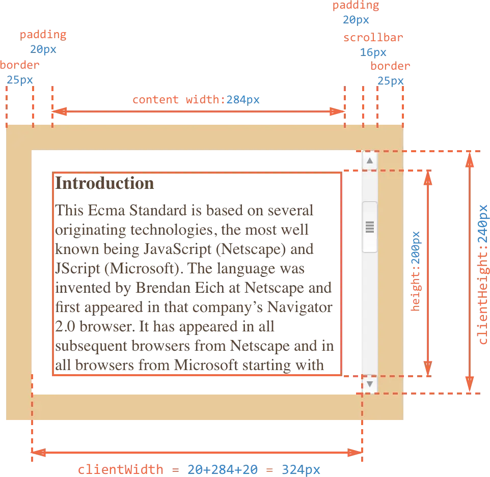 表示内容区域的宽度,包括padding大小,但是不包括边框和滚动条。 | |