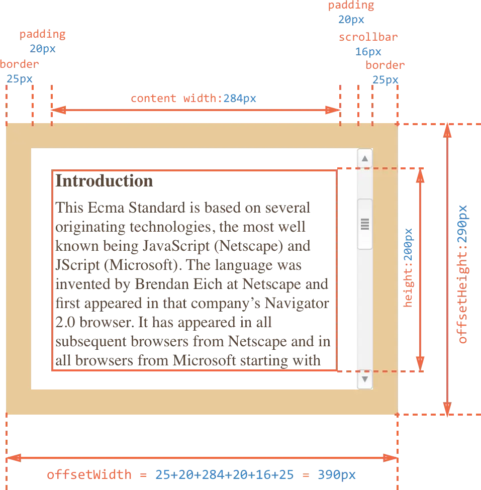 表示整个内容区域的宽度,包括隐藏的部分。如果元素没有隐藏的部分,则相关的值应该等用于clientWidth和clientHeight。 | |