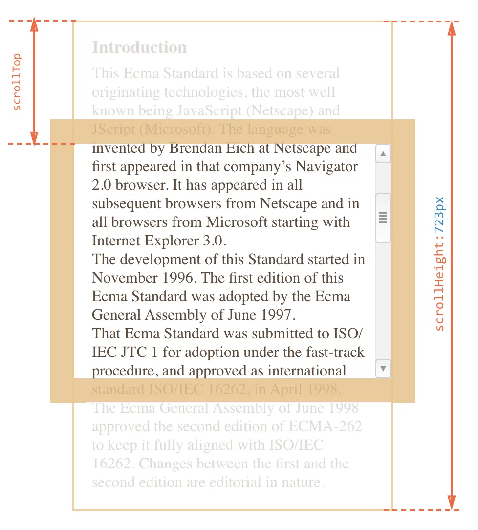 表示整个内容区域的高度,包括隐藏的部分。如果元素没有隐藏的部分,则相关的值应该等用于clientWidth和clientHeight。 |
