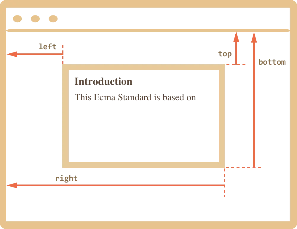 得到矩形元素的界线,返回的是一个对象,包含 top, left, right, 和 bottom四个属性值,大小都是相对于文档视图左上角计算而来。
