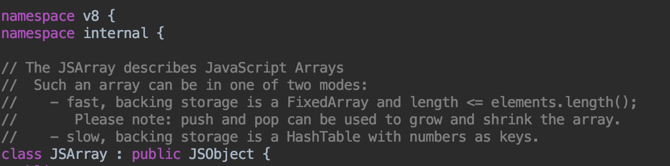 使用 JS 的数组时,发现 JS 的数组可以存放不同类型的元素、并且数组长度是可变的。数据结构中定义的数组是定长的、数据类型一致的存储结构。JS 中的数组竟然如此特殊,这也是为什么标题中数组二字加上了“”的原因。带着一脸的懵逼,打开V8源码,一探究竟。