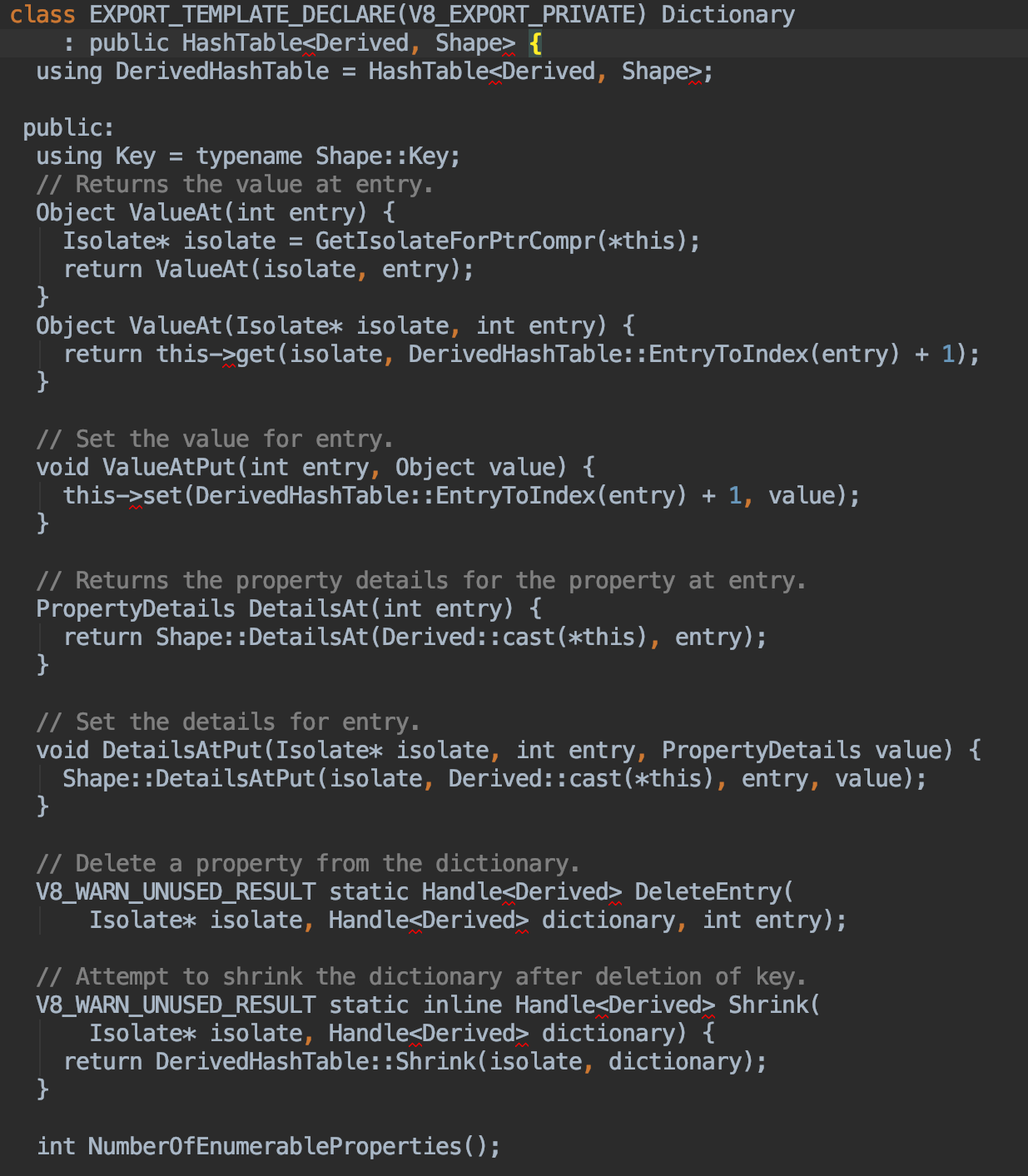 可以看到,内部是一个HashTable,然后定义了一些操作方法,和 Java 的 HashMap类似,没有什么特别之处。