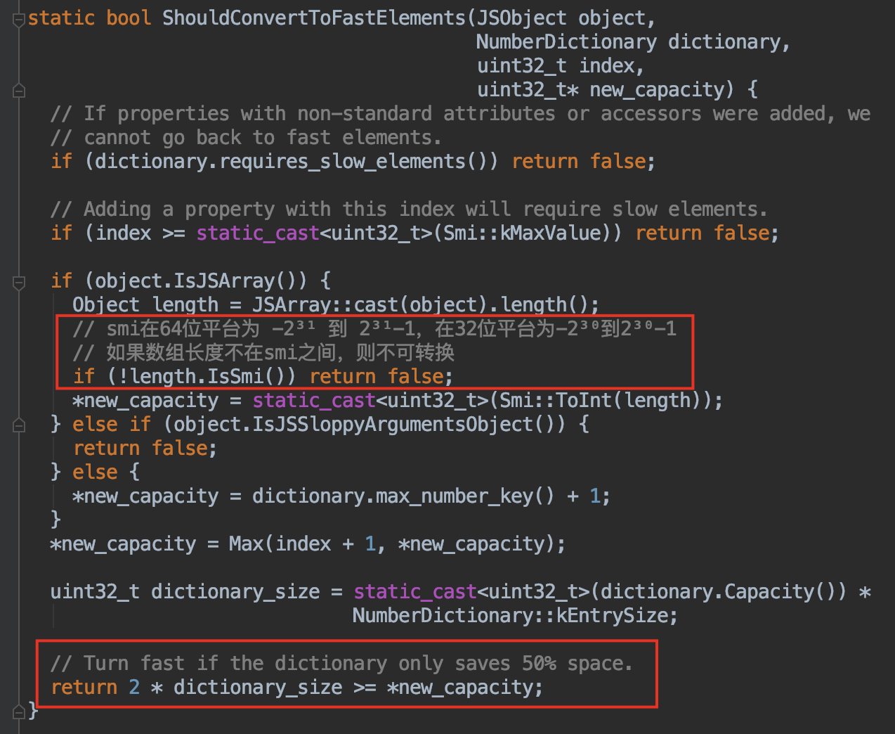 首先来看 V8 中判断快数组是否应该转为慢数组的源码:
