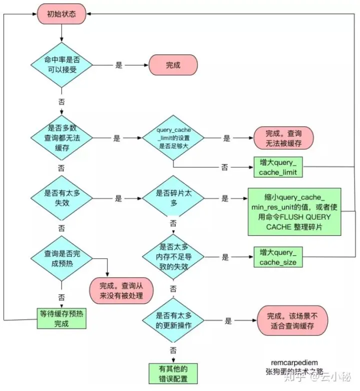 如果Query Cache碎片率超过20%,则可以用FLUSH QUERY CACHE整理内存碎片;如果你的查询都是小数据量的话,可以尝试减小query_cache_min_res_unit。