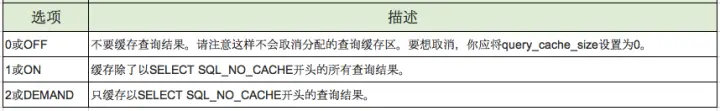 - query_cache_type