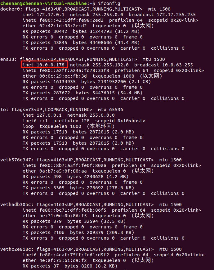 当然先得看下你linux的ip:可以看到此时ip为10.0.0.178(vm网络连接方式采用了桥接)。