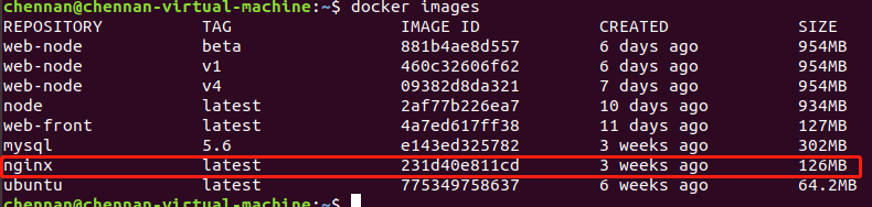 docker images看下nginx镜像是否安装成功