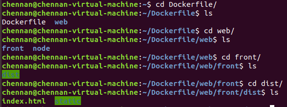 然后在/Dockerfile/创建web文件夹,在/Dockerfile/web/创建front文件夹,然后把前端dist拖到/Dockerfile/web/front/。可参照下面看是否文件目录正确