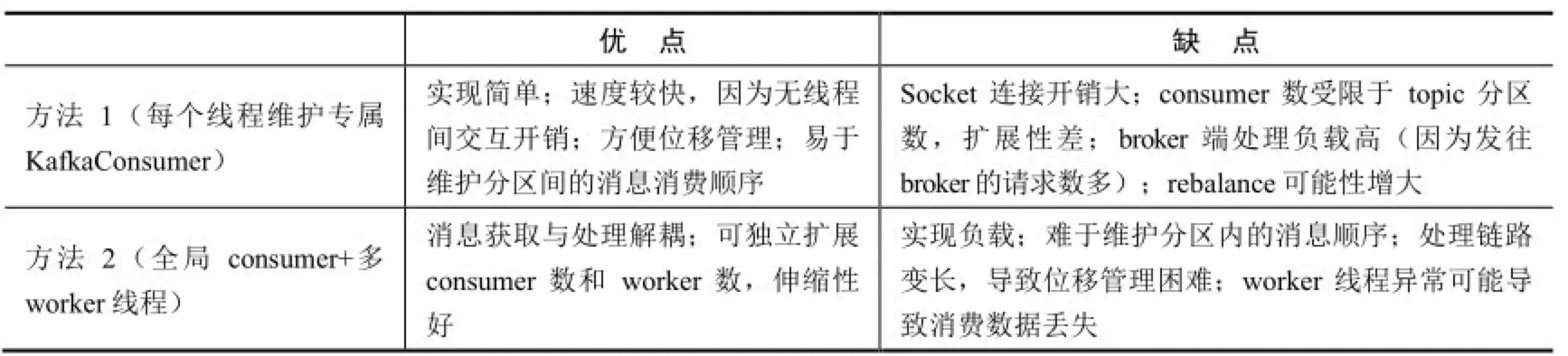- 消费者 consumer 是线程安全的吗?多线程实例、单线程实例、单 consumer + 多 worker 线程的优缺点?