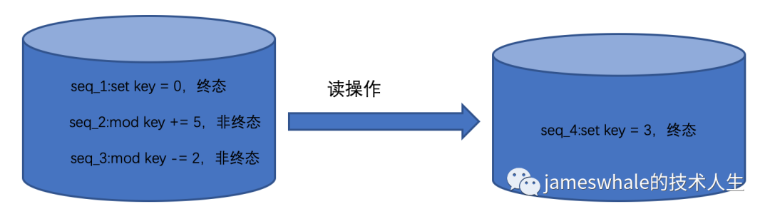 读操作,涉及Merge操作,速度比较慢。比如,先前针对一个key,先设置一个0,然后加5、再减2,在HStore里面有三条记录,从近到远分别是“减2”、“加5”、“设置0”,其中“设置0“是一个”终态“,HBase只有读到了”终态“才会停止往前读,Merge这三个操作,最终读出来的值是3,并将”终态3“设置到HStore里面,下次读取的时候不用再Merge了,直接读取到值3。