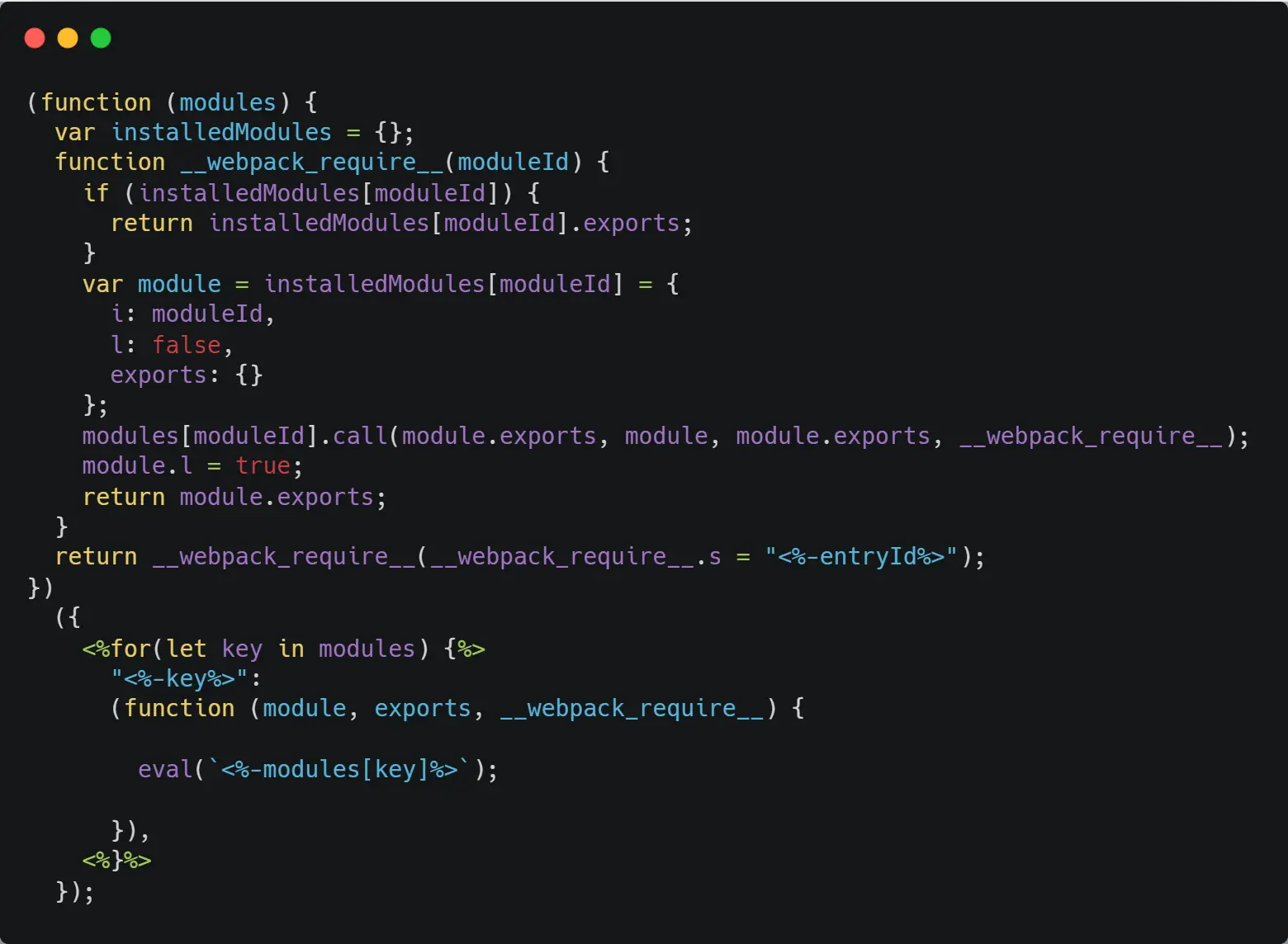 const code = ejs.render(templateStr, { entryId: this.entryId, modules: this.modules })